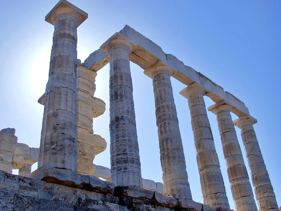 Ο επιβλητικός ναός του Ποσειδώνα στο Σούνιο που σε μαγεύει απο την πρώτη στιγμή. Απο τα πιο δημοφιλή αρχαιολογικά μνημεία της Ελλάδας όπου το μάτι χάνεται στο απέραντο γαλάζιο.